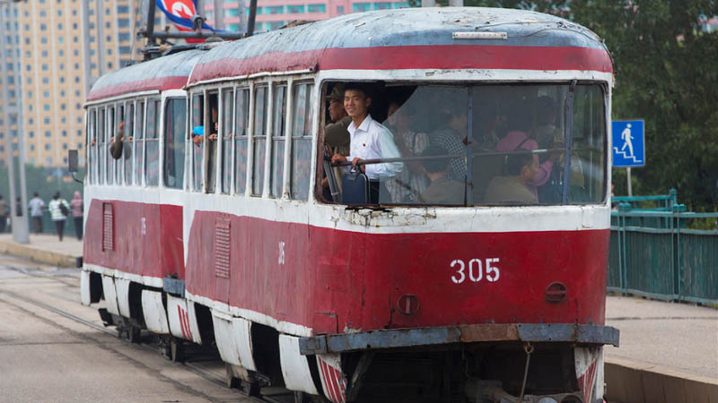 This is one more picture that can get banned. And what is the reason? Take a closer look at this tramway: its age, rusty sides, and broken glass reveal a lot about North Korean public transport. By the way, there is no public transport at all in some regions: people use carts and carriages — just like in ancient times.