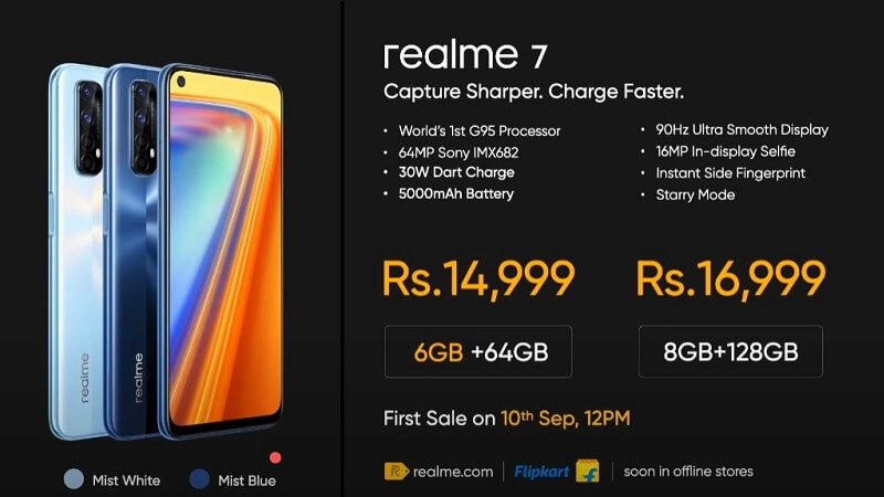 The device comes up with a 6.5 inches Full HD display, with a refresh rate of 90Hz and a 120 Hz touch sampling rate. Powered by MediaTek’s latest Helio G95 chipset the device promises the best performance. The rear camera is loaded with 64MP ultra-wide lenses while the front one is 16MP. Realme 7 promises performance for its price.