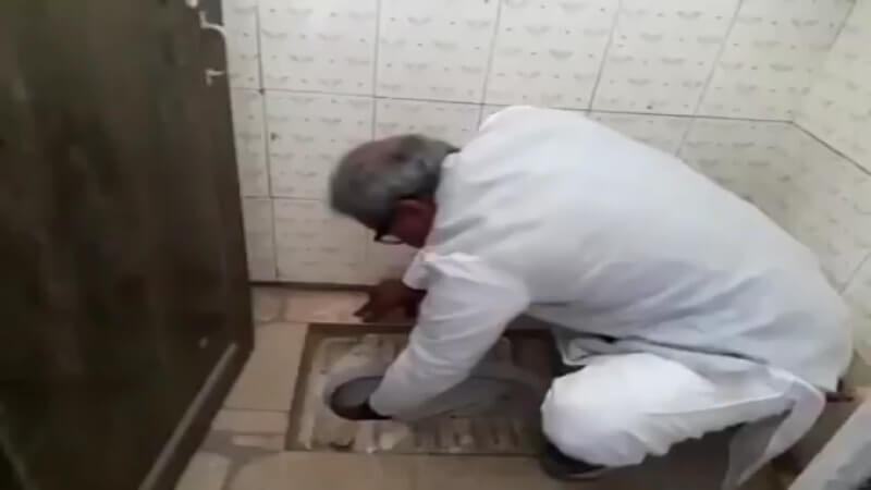 Without using any other equipment or sanitary products, you can see Mishra cleaning the privy with his bare hands in the video.