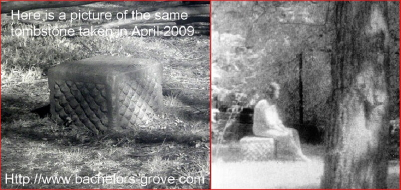 Bachelor’s Grove Cemetery is famous for the apparition of a transparent woman sitting on a tombstone. She has been named The Madonna of Bachelor’s Grove. There have been actual pictures taken of the woman sitting on the tomb as she stares of into the distance.
