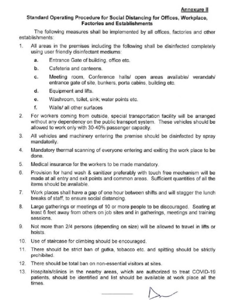10. Workspace has been asked to conduct screening of all employees and they should maintain a gap of 1 hour in between shifts and lunch breaks.