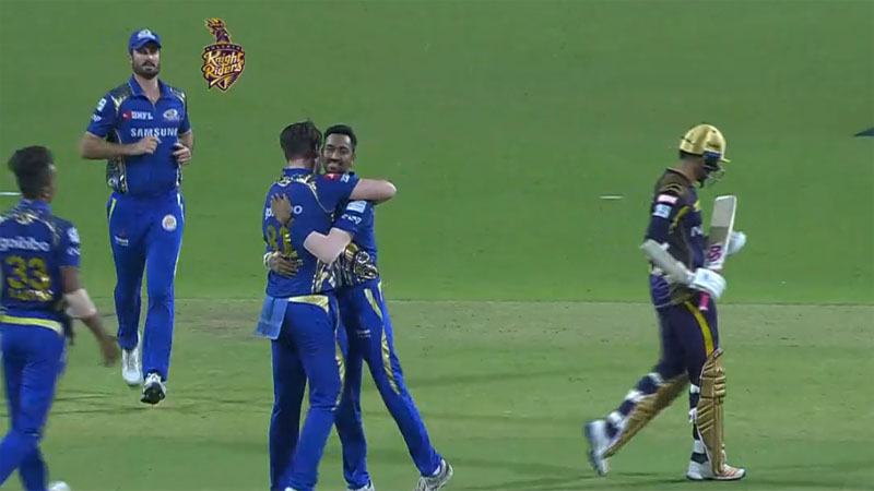 The Mumbai Indians bowlers put KKR batsman on the back foot after the powerplay. KKR lost wickets after wickets. Moreover, Hardik Pandya took two wickets in the tenth over. After the tenth over, the score of MI was 75 runs with the loss of 6 wickets.