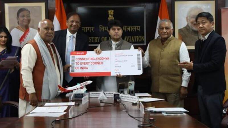 Union Minister Jyotiraditya Scindia, along with Chief Minister Yogi Adityanath and Minister of State for Civil Aviation VK Singh, virtually inaugurated eight new flight routes for Ayodhya.