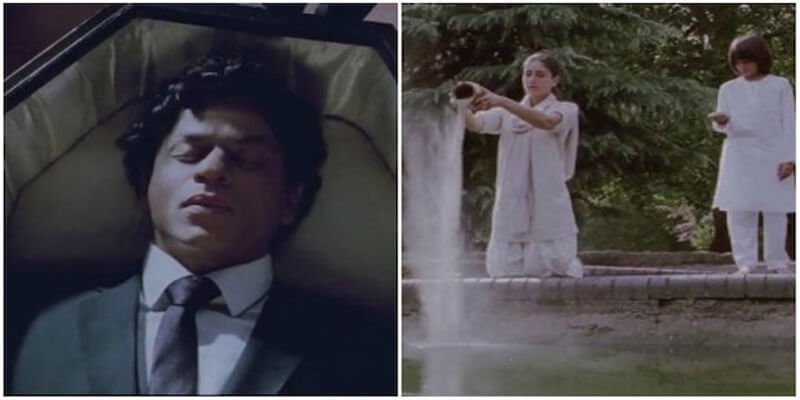 This is one of the most stupid things shown in the Bollywood history. After the death, SRK was buried according to the Christian rituals. Somehow, on the next scene Kareena Kapoor was shown plunging his ashes in the water.