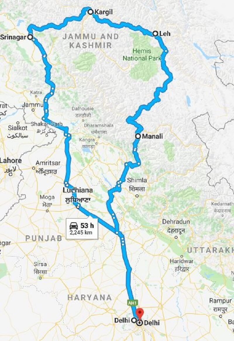 Route:- Delhi – Jammu (1N) – Srinagar (3N) – Kargil (1N)– Ladakh (3N) – Manali (2N) – Delhi