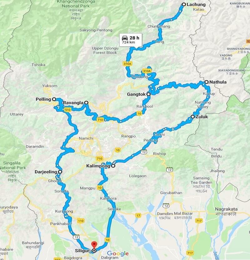 Route: – Siliguri – Darjeeling(2N) – Pelling(1N) – Ravangla – Gangtok(3N) – Lachung(2N) – Nathula – Zuluk(1N) – Kalimpong(1N) – Siliguri