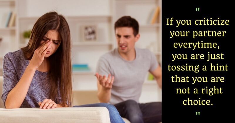 Being sarcastic and humorous can be good one or two times but if you criticize your partner every time and keep on telling your partner that “your IQ level reminds me of basement”. Clearly, you are just tossing a hint that you are not a right choice.