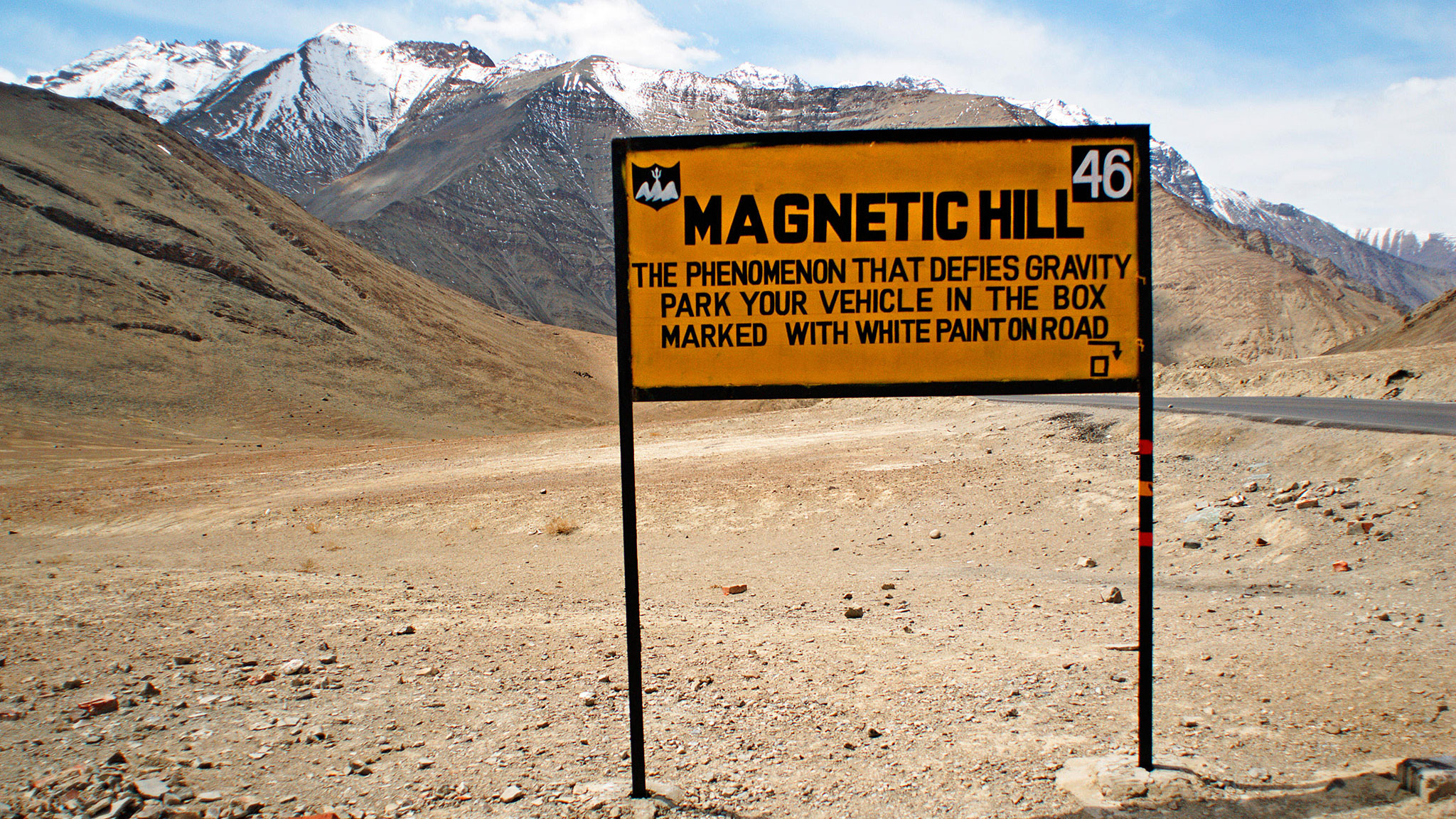It is a small stretch of road located near Leh in Ladakh where Vehicles with no ignition get attracted upwards towards hill. The layout of the area and surrounding slopes creates an optical illusion that the downhill road is actually an uphill road. Objects and cars on the hill may appear to roll “uphill” in defiance of gravity when they are, in fact, rolling downhill. The mystery however has attracted tourists for years.