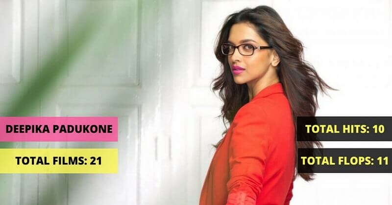 This Bollywood diva has done a total of 21 movies till now. Starting her career from Om Shanti Om opposite Shah Rukh Kahn, she has a record of 11 flop and 10 hit movies.