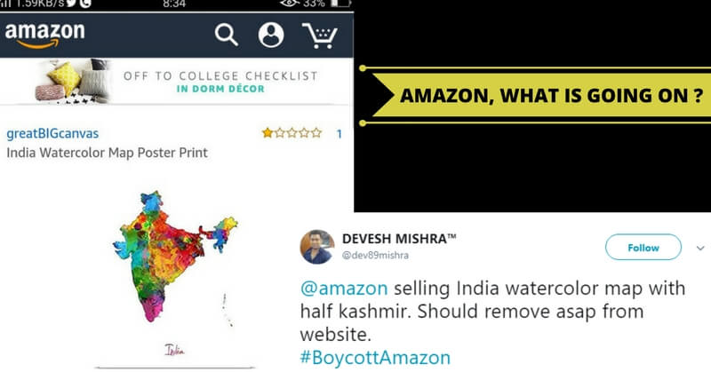 Amazon is once again in trouble after selling doormats with images of Indian gods on it and even renowned political image Sushma Swaraj has slammed Amazon and asked them to apologize. This time, Amazon China is in trouble because of selling Indian maps with only half of Kashmir on the map. Indians are furious and frustrated with Amazon for making such blunders. Kashmir dispute between India and Pakistan is already a very sensitive issue, and Amazon China is slammed on Twitter for this deed. Here are reactions of people who trolled Amazon China in a sarcastic and funny way!