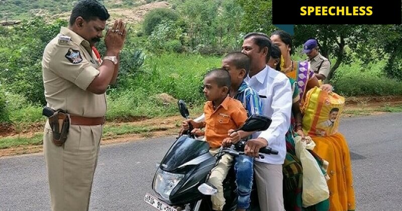 Circle Inspector B Shubh Kumar of Anantapur’s Madakasira Circle, who was going to work saw the man K Hanumantharayudu, on a bike with his two sons sitting on the fuel tank, his wife behind him and a relative on edge of the seat.