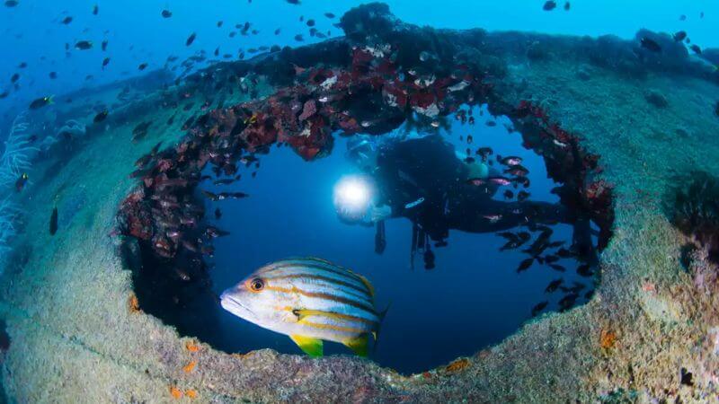 Explorers can view a ship that has been around since the turn of the twentieth century because it was built in 1903. It is occasionally possible to see minke whales or humpback whales around the wreck during the appropriate season. From October through January, it’s possible to come across the charming Giant Whale Shak. Excellent hard and soft coral, as well as gorgonians and sea fans dancing in the current, will be present for your delight. This dive spot is truly an excellent location for taking underwater pictures.
