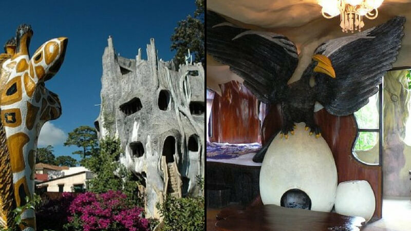 This concrete-treehouse drew inspiration from Gaudi’s peculiar designs. The guesthouse features ladders, tunnels, and hollowed-out rooms which are available for tours and night stays.