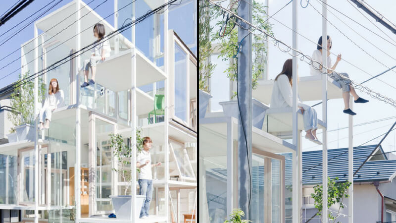 Designed by Sou Fujimoto Architects using 21 individual floor plates placed at various heights, this house is transparent. The house owners want to experience living as nomads in their own home and were inspired by the idea of living in a tree.
