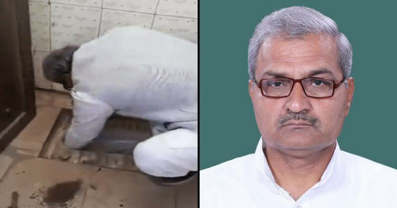 Just a few days back, a picture of Rajasthan Health Minister Kalicharan Saraf urinating on a wall in Jaipur went viral on social media; while on the other hand, BJP MP is seen cleaning a clogged toilet with his bare hands and taking Swacch Bharat mission to another level.