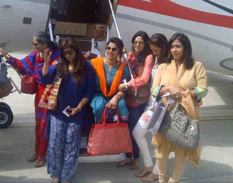 In the photo, Sridevi is posing with her friends and her private jet to flash the prosperousness. And showing how her life is a bed of roses.