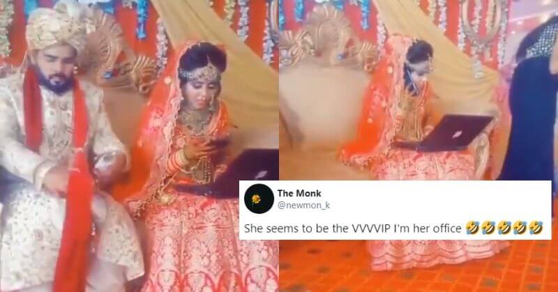 Work from Home is the new trend at this coronavirus pandemic. Most of the organization has allowed its employees to work from home. According to studies, work from home has increased the productivity of the majority of the employees. But, as there is a saying, every coin has two sides. The work from home has also increased the workload on the employees. Gone are those days, when there were 9 to 6 working hours. During work from home, employees are facing several issues too. But the best thing is you can do various work simultaneously at home. You can take a break whenever you need it. Recently at the wedding, a bride is seen working on her laptop and attending a call. The video is getting viral and getting hilarious responses from the audiences.