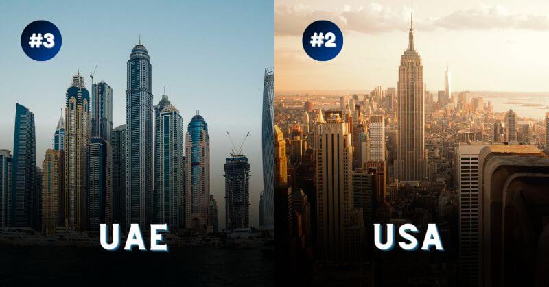 To capture its beauty, the country, United Arab Emirates, boasts 325 buildings, ranking third on the list. Dubai is known for being the city with the most skyscrapers in the United Arab Emirates.