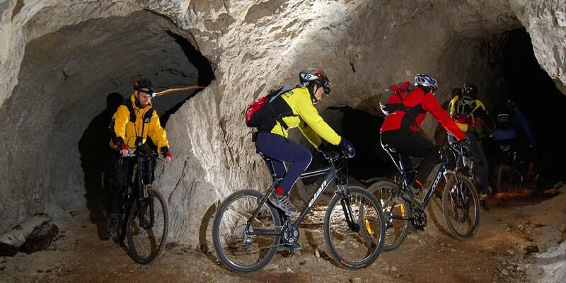 Slovenia has tons of caverns and cave systems and underground mountain biking is a thing. Bundle up, don a headlamp and follow a bike guide through sections of abandoned mines as you literally bike through a mountain in the Koroška region.