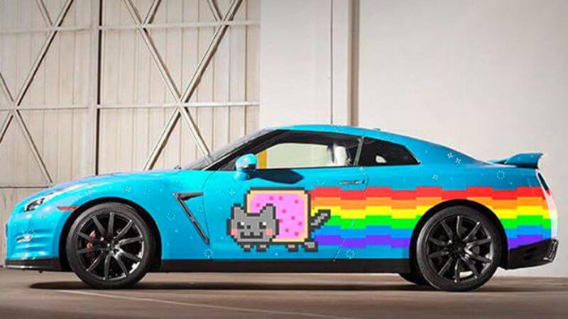 The paint scheme stood out in this car; Nyan Cat Meme painted this car. The stereo of this car was also hooked up in such a way by Deadmau5 that it would only play the Nyan Cat theme song.