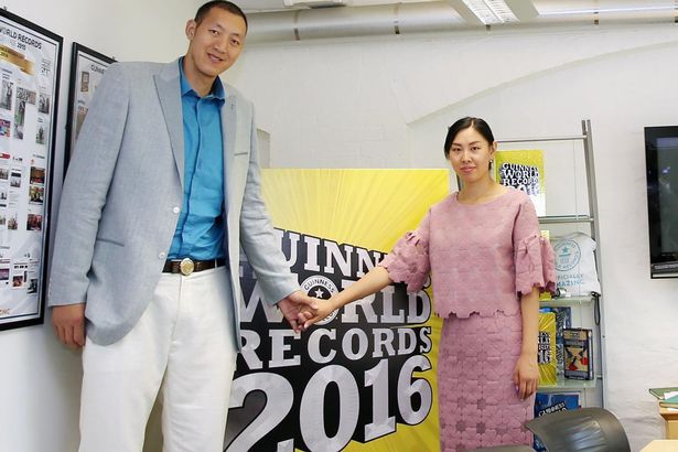 Together, they measure 13 feet 10.72 inches, Sun Mingming, 33, height, 7ft 8.98 in (236.17cm) and his wife Xu Yan, 29, height, 6ft 1.74 in (187.3cm) of Beijing own the title for the tallest married couple.