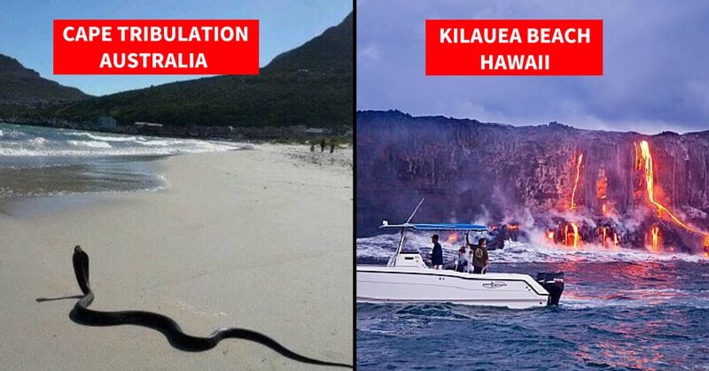 Hawaii is famous for amazing beaches, big waves, and perfect sunbathing weather but it’s not without it’s dangers. Hawaii also has numerous volcanoes with Mt. Kilauea being the most active. The sand on the Kilauea beach is black from volcanic ash and while it may be an amazing place to visit, there is still the danger of the volcano erupting. Especially when you consider that it has been active since 1983, it should make you think twice about visiting here.