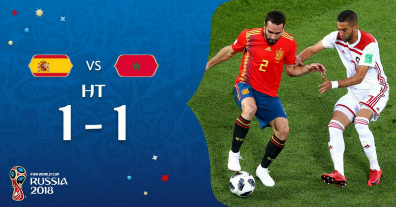The match took place at Kaliningrad Stadium. Morocco scored first, taking the lead with Khalid Boutaib’s goal at the 14th minute. Following which, Spain scored the goal with Isco scoring one for their team. The score at halftime was 1 – 1. Youssef En-Nesyri scored one for Morrocco giving it the lead at the 81st minute. However, Iago Aspas leveled it with his goal. The match ended in a draw.