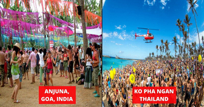 Ko Pha Ngan is one of the most famous party destinations in India. It attracts more than 30,000 people per month. The place follows the neon paint as the dress code and you can see the party at its wildest during the full moon. After the party, you can check in to Hard Road Hostel in Koh Phangan.