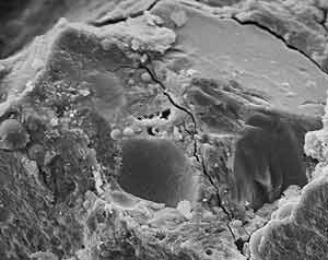 A micro-crack in steel