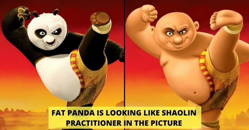 This is the humanoid kung fu panda. Certainly, the artist nailed it. The fat panda definitely looks like the Shaolin practitioner in the picture.