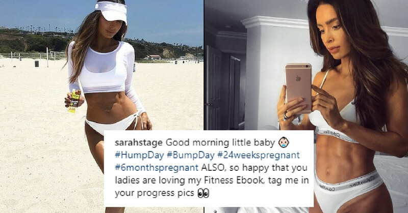 Sarah Stage recently shared a progress picture to mark six months of pregnancy, but her baby bump is hidden behind a tight set of abs and people are baffled.