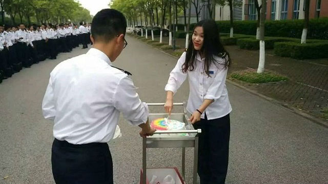 The girl, Wu Xun doing her Marine Engineering at Shanghai's Merchant Marine College must have been one extremely lucky girl to receive such special treatment.