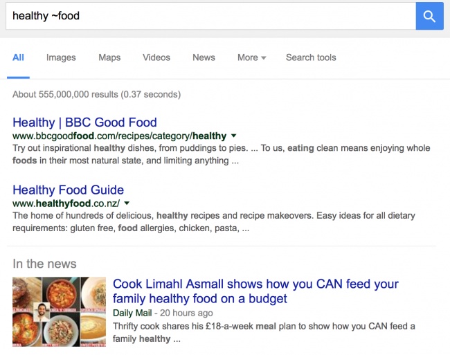 For example, if you find for the term “healthy ~food” you’ll get results about the principles of healthy eating, cooking recipes, as well as healthy dining options.