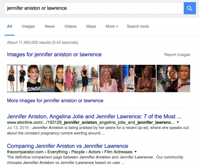 Sometimes we’re not very sure that we accurately remember the information or the name we need to start our search with. But this shouldn’t be a problem! Simply put in a few potential words of what you’re looking for, and separate them by typing the “|“ symbol or you can also use an “or”. It will give you two most convenient options.