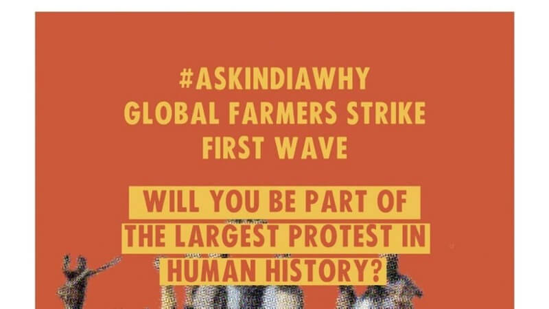 The cover has the title #ASKINDIAWHY Global Farmers Strike First Wave Will you be part of the largest protest in human history.