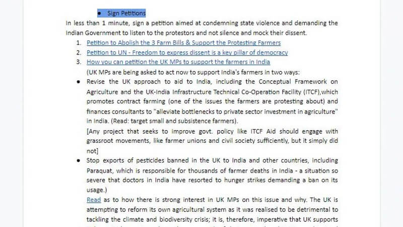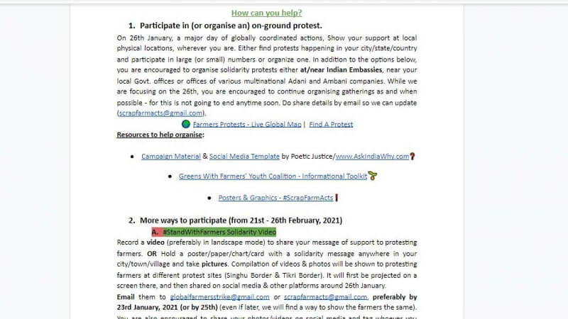 Greta Thunberg is an 18-year-old Swedish climate activist. She had shared a toolkit document called Global Farmers Strike. Even Greta is calling RSS-BJP a fascistic ruling party. The document is titled “#ASKINDIAWHY Global Farmers Strike First Wave Will you be part of the largest protest in human history?” The document has a detailed plan for accelerating the farmers’ agitation taking place at Delhi borders, on January 26, 2021, on Republic Day. Below is the full document that Greta Thunberg had tweeted,