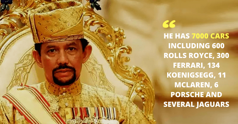 Talking about the wealth of the Sultan, he got 7000 cars including 600 Rolls Royce, 300 Ferrari, 134 Koenigsegg, 11 Mclaren, 6 Porsche and several Jaguars.