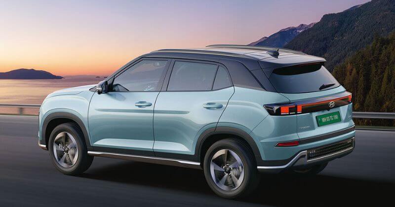 From the side, the Creta Electric looks as minimalist as any standard Creta, sharing the window lines and the silver trim under the doors. The roof and pillars have been painted black, and the outside rearview mirrors (OVRMs) are equally black to give that bold look. For the final touch of the luxury exterior overhaul, this SUV comes with newly developed 17-inch alloy rims that boast an aerodynamic design for better efficiency.