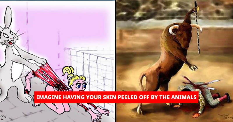 Animals are a part of our environment. Some animals are treated like family members. But, not all are this lucky. Most of them are either butchered and served on plates, or peeled off from their skins so that we can have beautiful and long-lasting accessories. So imagine if humans were swapped with animals and treated the way animals are? These artists have shown this perfectly through their illustrations. Altogether, we want you to feel the pain and sorrow below.