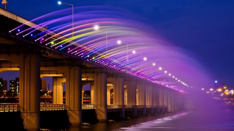 2. Banpo Bridge Rainbow Fountain: Seoul, South Korea