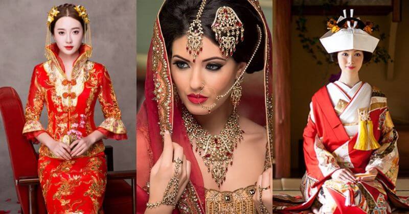 Brides in British culture tend to wear white, with long, flowing trains and delicate veils. But how do our own bridal traditions compare to India, Japan, and China?