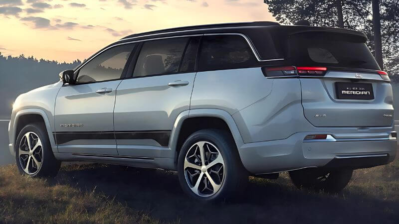 When we talk about design 2025, the Jeep Meridian sports, a refreshed front fascia. The LED headlight now sits above a redesigned black section while a chrome strip has been added to the lower part in front of the bumper. However, the SUV retains its signature seven-slot grille at the rear. The updated LED tail lights, feature, satin, chrome, and essence, which are complemented by a horizontal chrome bar. The side profile with a Trapezoidal wheel arches, adds the rugged yet stylish appeal of the vehicle.