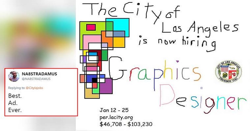 Gone are those days where people have to roam on roads for jobs. Social media made the job searching process easier. And we see innovative resumes that people come up with. But this time, city of Los Angeles came up with a hilarious but impressive job advertisement for Graphic Designer which is creating buzz on Twitter.