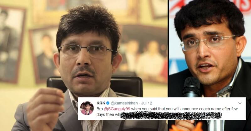 Reacting to this, KRK took to Twitter to call former Indian captain and member of the Cricket Advisory Committee Sourav Ganguly a corrupt person. This happened around the announcement of Team India's coach. And KRK being KRK, tweeted this: