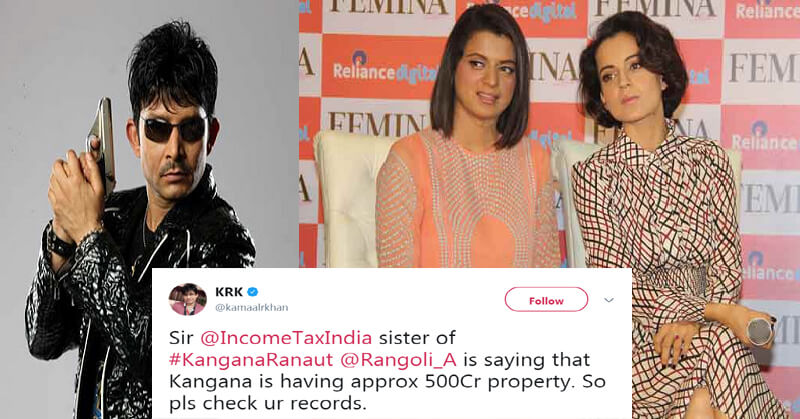 The sister of Kangana Ranaut, Rangoli talked about the assets her sister has. Moreover, she highlighted that it is earned by all Kangana Ranaut. To this, KRK could not resist the impulse to report it to the income tax.