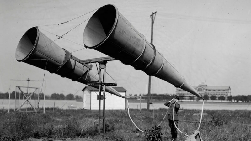 Back then, during the time of wars, surprise bomber plane attacks and fighter jets were very common and they were killing a lot of civilians and attacking army bases. They didn’t have satellites to help and track like we do now. They had instruments as such shown in the image – A Airplane Noise Detector to find out if any hostile aircraft is approaching them.