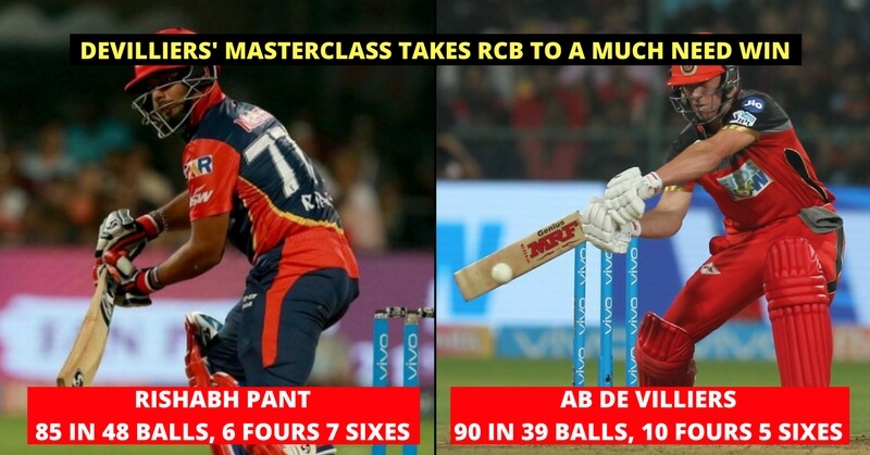Second match on this Saturday as the two bottom-placed teams, Delhi Daredevils and Royal Challengers Bangalore face each other in this match 19 of the Vivo IPL 2018. AB de Villiers spectacular innings take RCB to a victory.