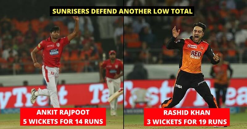 Having defended the lowest total in the last match, SRH wouldn’t feel completely out of it. But the team, unfortunately, got no early wickets. Sunrisers got 5 wickets giving away just 19 runs. The bowlers showed their class again as they defended a low total to move up in the table. Sandeep Sharma showed outstanding piece of bowling as he got 2 wickets giving away just 17 runs in his 4 overs. But it was Rashid Khan who got 3 wickets for just 19 runs was their star performer as he won them their second match in a row.