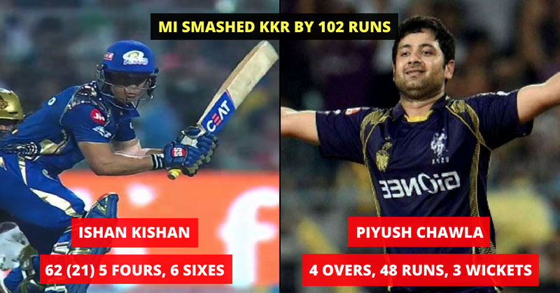 By the end of the 20 overs, Mumbai Indians scored 210 runs with the loss of 6 wickets. Undoubtedly, Kolkata Knight Riders had a huge target to achieve. Piyush Chawla struck 3 wickets but the economy rate was too high.