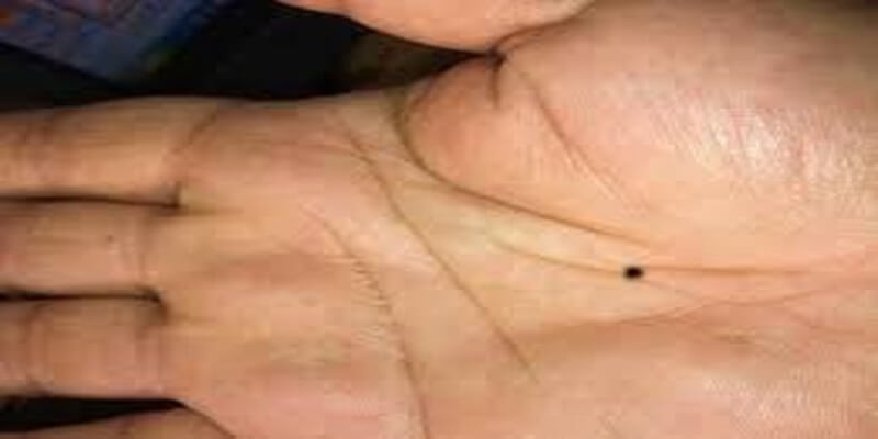 If the mole is on the upper half of the palm then you will taste wealth and success very early in your life. If the mole is in the lower half of the palm, then it means you might have to work hard and struggle to get your due success and wealth, but you will get it for sure.